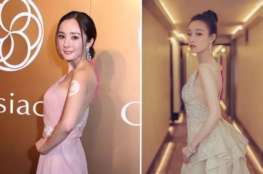 而楊冪,則因?yàn)轭^部前傾